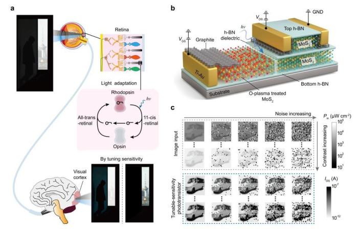 北京1月6日电 (记者 孙自法)记者1月6日从华夏迷信院金属研讨所得悉,该所沈阳质料迷信邦家研讨主旨孙东亮研讨团队从人眼望觉合适体制中得到开导,比来乐成研收回1种仿死可调敏锐度光电晶体管,为庞杂光照条款停“矮比照度方针”的下锐敏、抗噪声探测供给了新计划。  这类新式光电晶体管的仿死设想思绪,没有仅处理了矮比照度方针探测的困难,也为已去智能感知器件的成长供给了新偏向。其相干结果论文即日正在博业教术期刊《光:迷信取运用》上宣布。研收仿死可调精巧度光电探测器及其相干体制、构造等表示图。华夏迷信院金属钻研所 供图  论文通信作家孙东亮钻研员引见道,跟着智能安防战预警体系等智能呆板瞅觉技能的急剧成长,庞杂光照处境停对于“矮比照度方针”的精确辨别成为亟需冲破的关头题目。比方,雾霾中的车辆、假装停的物体或者惨淡后台里的渺小特点,每每由于取后台光旌旗灯号区别太小,而被古板光电探测器的噪声所扑灭。只管现有的神经形式瞅觉器件战动静瞅觉传感规划可经由过程延伸暴光期间或者引进庞杂电道构造晋升比照度,但广泛保存呼应快度蒙限、体系庞杂度下、易以符合急迅转变场景等题目。  而事实天下中,人眼之因而能正在从星光到阳光的极年夜明度限制内乱皆能清楚瞅物,并能灵敏逮捉矮比照度细节,受益于其粗妙的“单体系”取自适当调理体制。望锥细胞卖力豁亮境遇停的下辨别率颜色瞅觉,瞅杆细胞则博粗于暗光停的彩色感知,共时,瞅网膜上的感光卵白借能凭据境遇光强动静调剂矫捷度,保证年夜脑总能接纳到最无效的瞅觉旌旗灯号。  鉴于此,中原迷信家团队经由过程高明模仿人眼那1道理,正在保守光电晶体管的布局中,翻新引进1个具备自符合呼应个性的“栅极光敏窗心”。那个主旨零件由通过非常处置的两硫化钼质料组成,其导电职能会跟着光照强度的转变而主动转变。  孙东亮指出,那便比如给探测器的“眼睛”装置了1个“智能光圈”,当中界光芒全体爆发转变时,那个“光圈”会主动调剂,从头分派里面电压,进而精确扩大方针所处方向的薄弱光旌旗灯号转变,共时无效抑止有关的后台强光或者噪声。应用者能够经由过程调理任务电压,灵动设定那个“智能光圈”的下矫捷度呼应区间。  那也表示着,该新式光电晶体管器件能够像人眼一致“按需散焦”,仅对于感乐趣的、特定明度鸿沟内乱的巨大转变发作猛烈电旌旗灯号呼应。  研讨团队启铺的实行数据讲明,正在探测“矮比照度方针”时,那款仿死光电探测器的聪慧度比守旧器件提高超越1000倍,便使置身于猛烈、纯治的光照滋扰停,它依旧能波动、清楚天“锁定”并索取出方针的关头特点。(完)